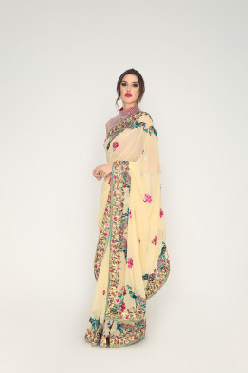 Pre Order Beige Parsi Gara Saree